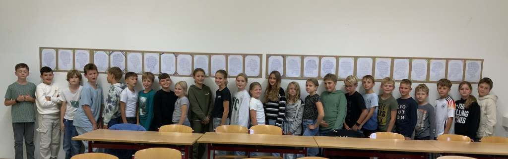 Wir Schüler*innen der 1F haben im Deutschunterricht ein besonderes Selbstporträt erstellt: Dafür haben wir zuerst ein Foto von uns gemacht, unseren Kopf ausgeschnitten und diesen Rahmen als Vorlage für einen Text, in dem wir uns vorstellen, verwendet. Unsere Porträts hängen jetzt als Dekoration im Klassenraum. Lehrende sowie Schüler*innen aus anderen Klassen können unsere Kunstwerke nun bewundern.