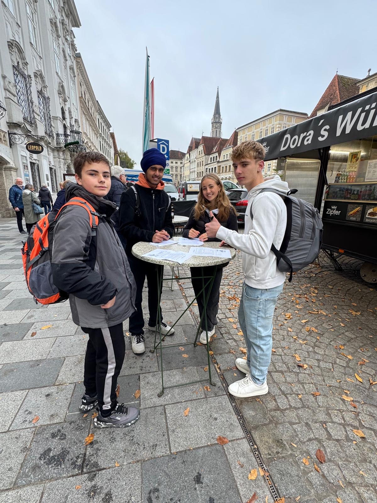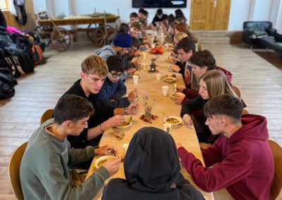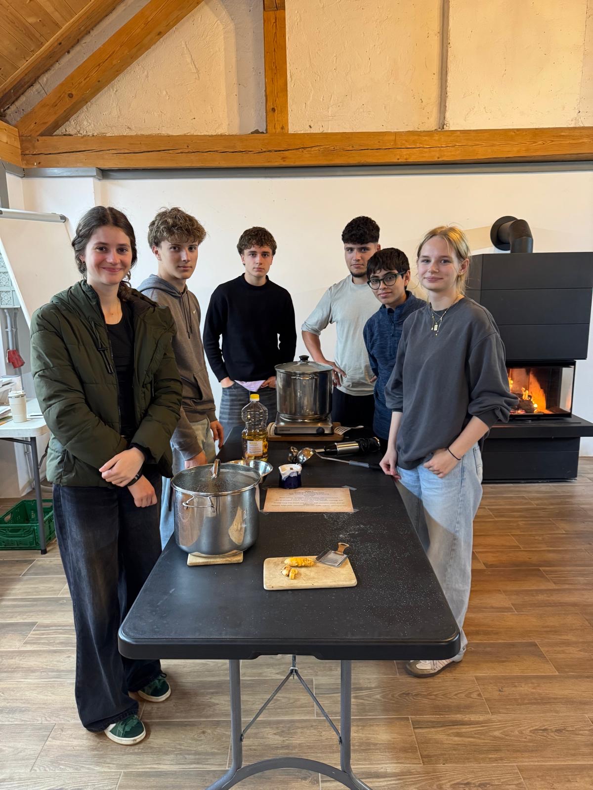 Ein weiterer Höhepunkt war der Ausflug zum Bio-Bauernhof Fuxengut. Dort konnten die Jugendlichen erleben, wie nachhaltige Landwirtschaft funktioniert, welche Rolle Saisonalität spielt und welche Bedeutung kurze Transportwege für Klima und Umwelt haben. Außerdem wurden Kürbisse frisch vom Feld zu einer köstlichen Kürbiscremesuppe verarbeitet.