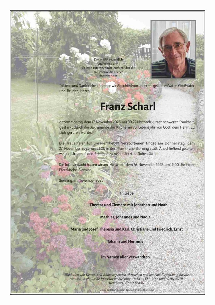 Seine ruhige, besonnene Art war besonders geschätzt. Er war nie einer, der seine Meinung lautstark kundtat, der sich mit seinen Ansichten vordrängte oder ins Rampenlicht stellen wollte. Er war aber einer, der immer eine Meinung hatte. Wer ihn danach fragte, hörte sie auch – und oft war sie sehr hilfreich, weil Franz Scharl nicht nur einfühlsam, sondern auch klug und lebenspraktisch war.