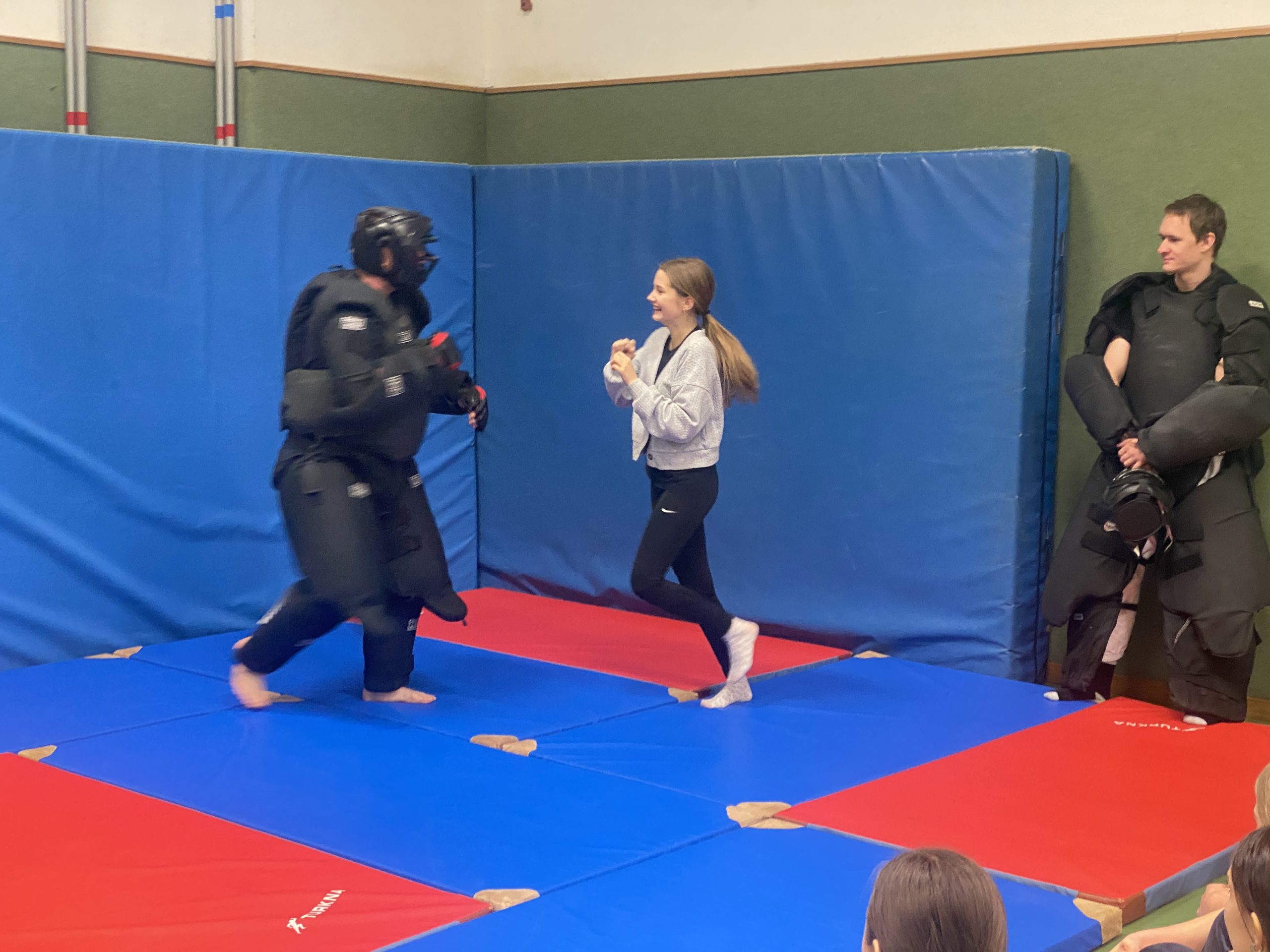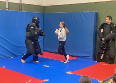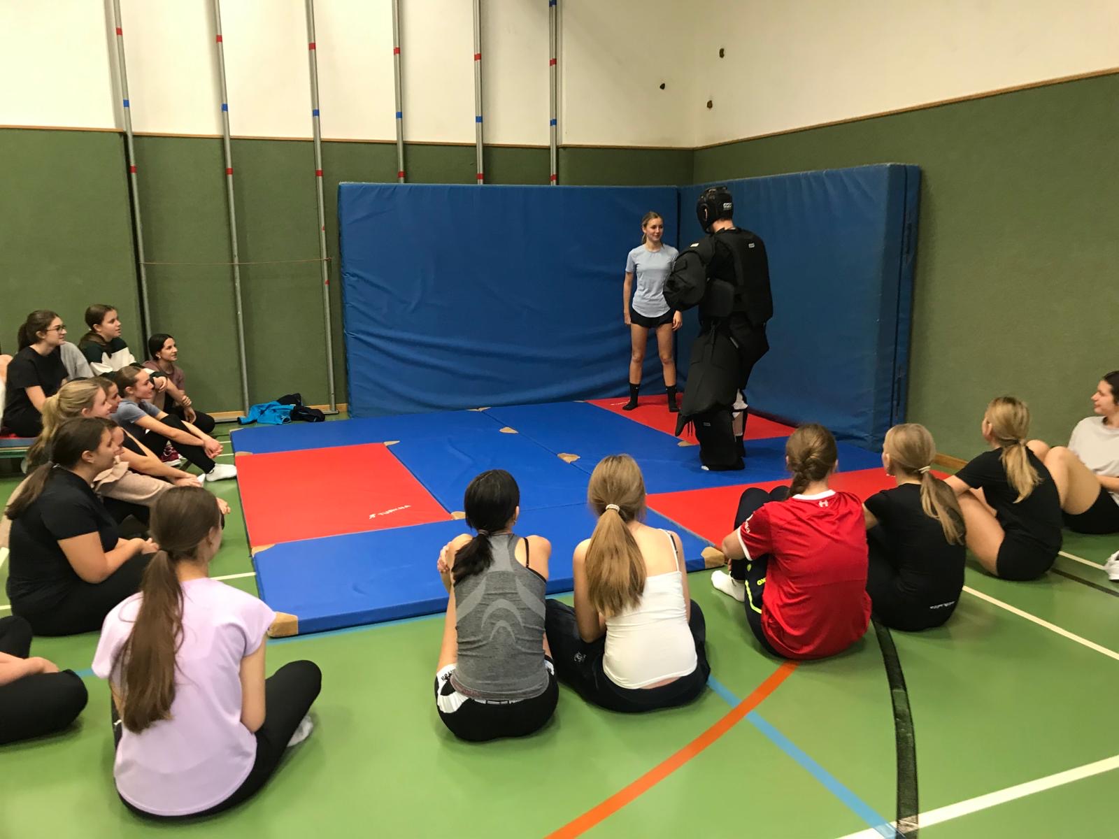 Im Rahmen des Sportunterrichts nahmen die Mädchen der 5AB an einem Selbstverteidigungskurs teil. Der Kurs wurde vom Verein Selbstverteidigung Innviertel durchgeführt und umfasste insgesamt vier Unterrichtseinheiten. Zwei erfahrene Trainer vermittelten den Schülerinnen praxisnahe Techniken zur Stärkung von Selbstbewusstsein, Aufmerksamkeit und Handlungssicherheit in Alltagssituationen.