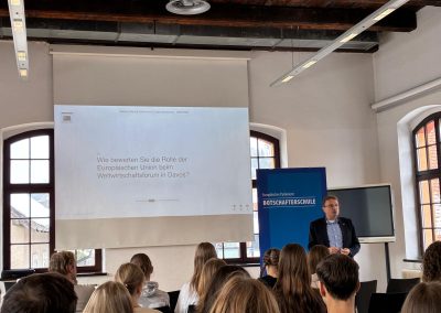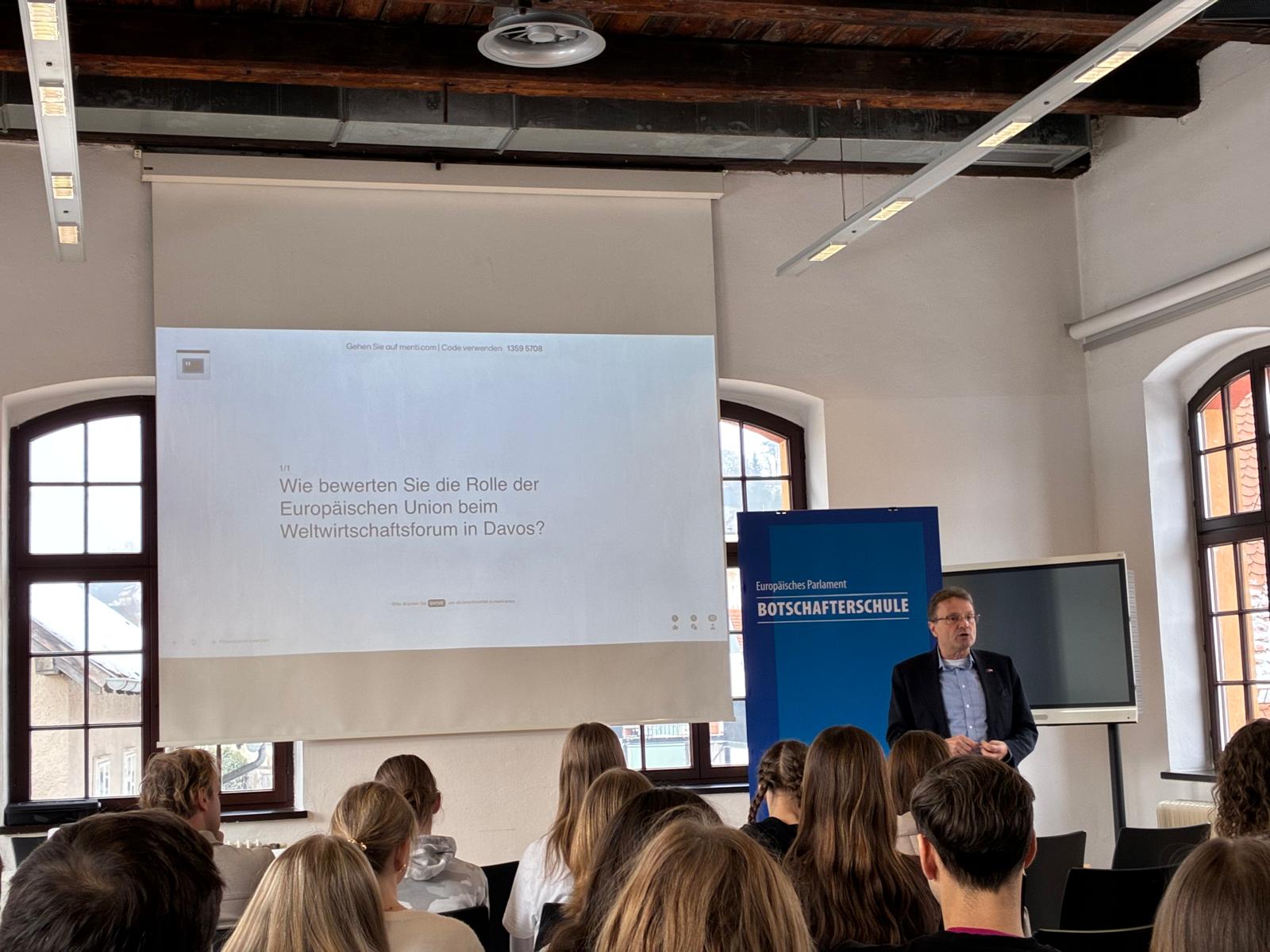 Ein besonderer Höhepunkt war der Besuch des Europaabgeordneten Hannes Heide, der zur aktuellen Lage der EU sprach, für einen offenen Austausch zur aktuellen Situation bereit war und die Fragen der Schüler*innen und Lehrenden beantwortete.