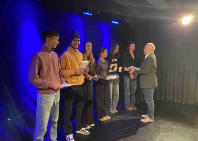 Junge Stimmen, klare Standpunkte und große Themen prägten am 4. Februar 2026 den Redewettbewerb der 7. Klassen des BRG Steyr im AKKU Steyr. Sechs Schüler*innen, die sich in einer Vorausscheidung qualifiziert hatten, traten mit Reden zu gesellschaftlich relevanten Themen auf die Bühne. Mit sprachlicher Überzeugungskraft und persönlichem Engagement setzten sie sich mit aktuellen Fragestellungen auseinander. Als Gewinner des Wettbewerbs ging Kamal Multani hervor, der in seiner Rede die Bedeutung kritischen Denkens im Umgang mit Fake News hervorhob und damit das Publikum überzeugte.