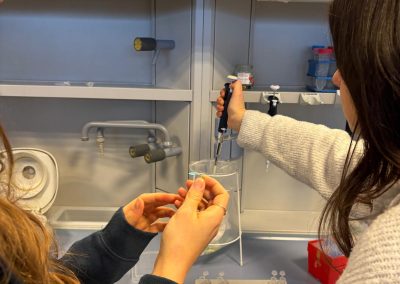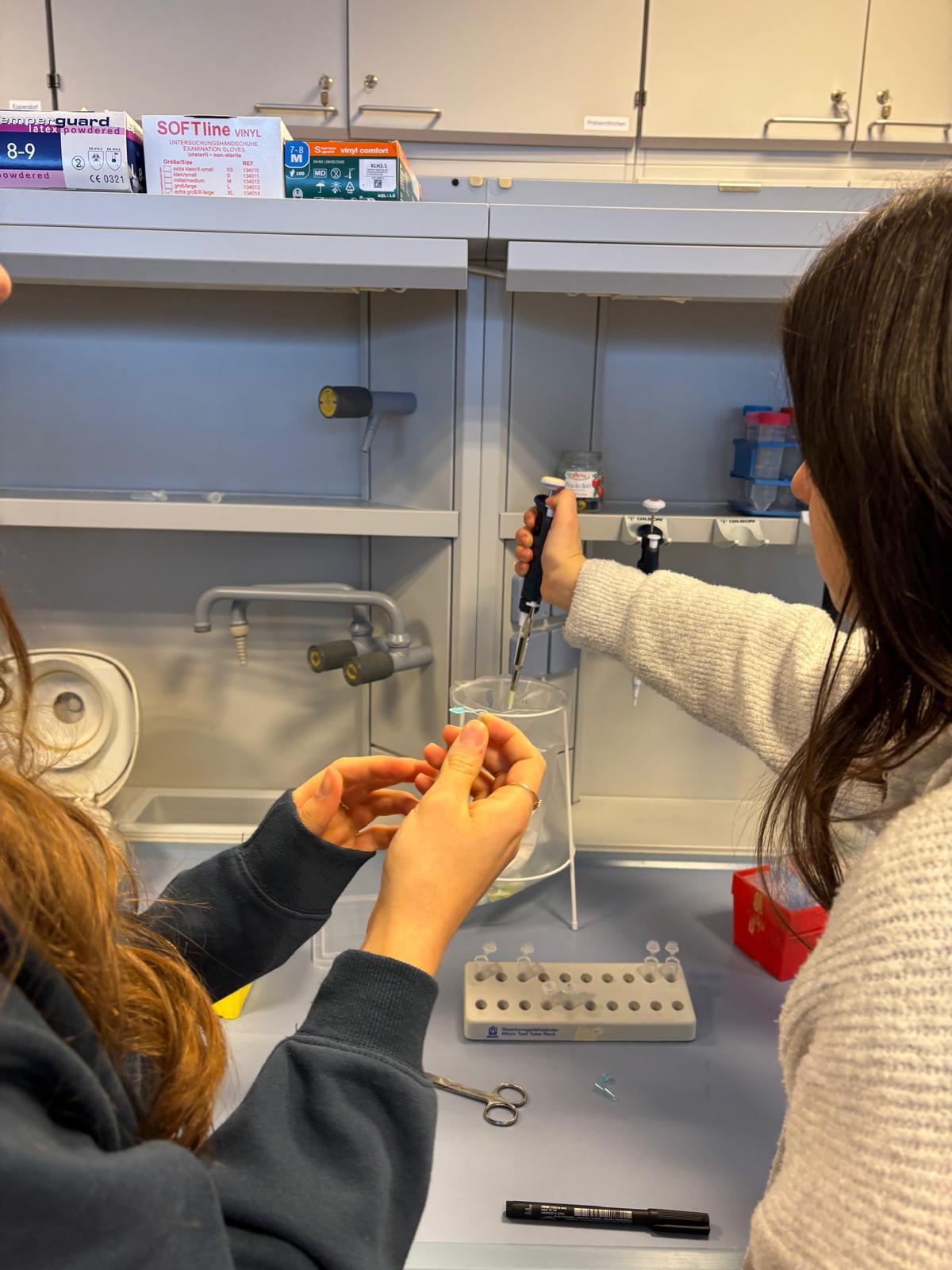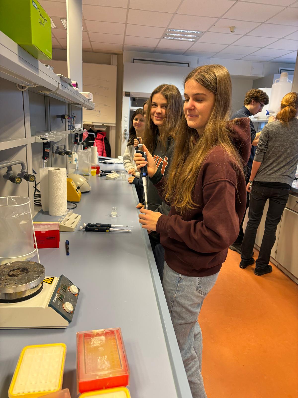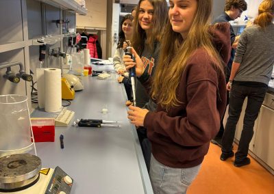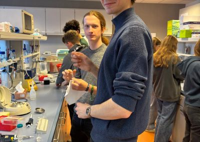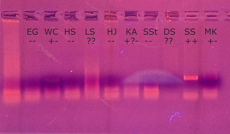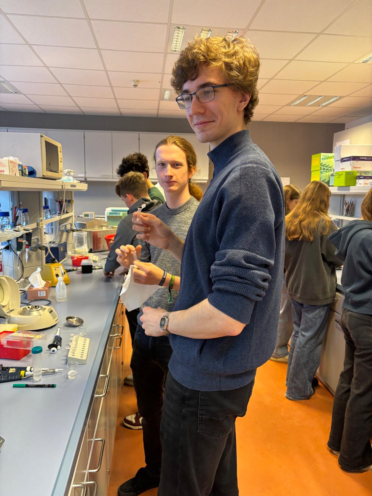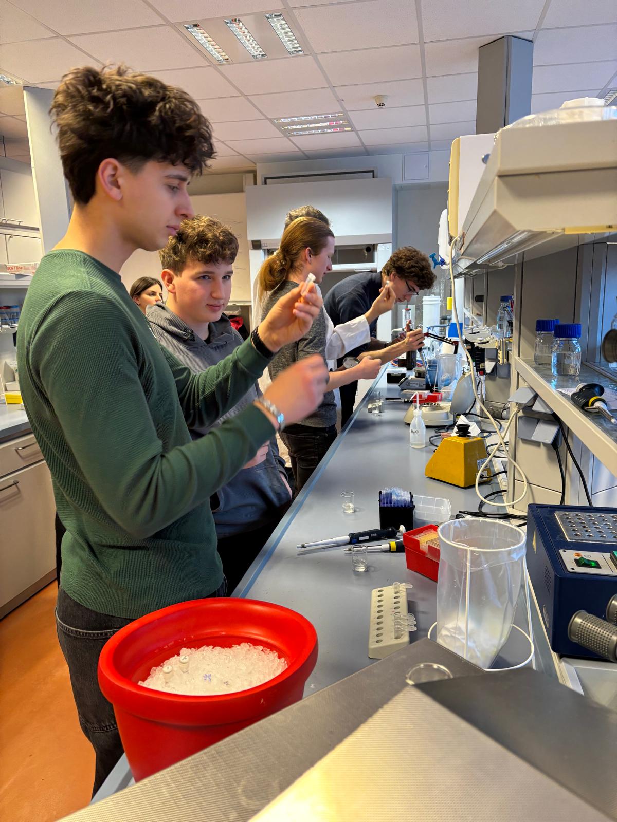 Anschließend konnten wir selbst aktiv werden: Wir bestimmten unsere eigene Blutgruppe und führten einen PCR-Test durch. Dabei hatten wir nicht nur die Gelegenheit, praktische Laborerfahrungen zu sammeln, sondern auch eine Mutation auf Chromosom 8 zu identifizieren.