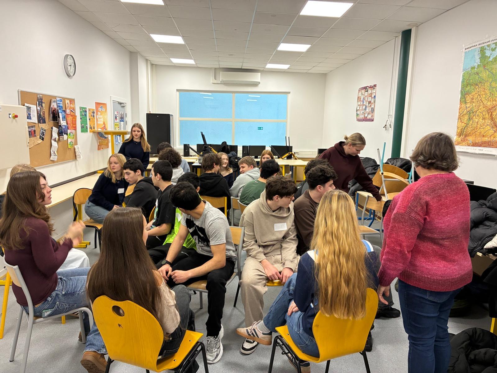 Bei einem Quiz von Europe Direct und einer gemeinsamen Schnitzeljagd durch das Europaviertel stellten wir mit unseren französischen Partnerschüler*innen unsere EU-Kenntnisse unter Beweis.