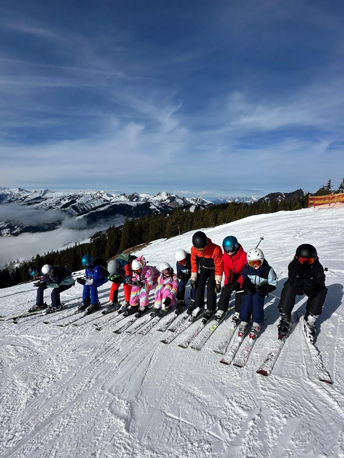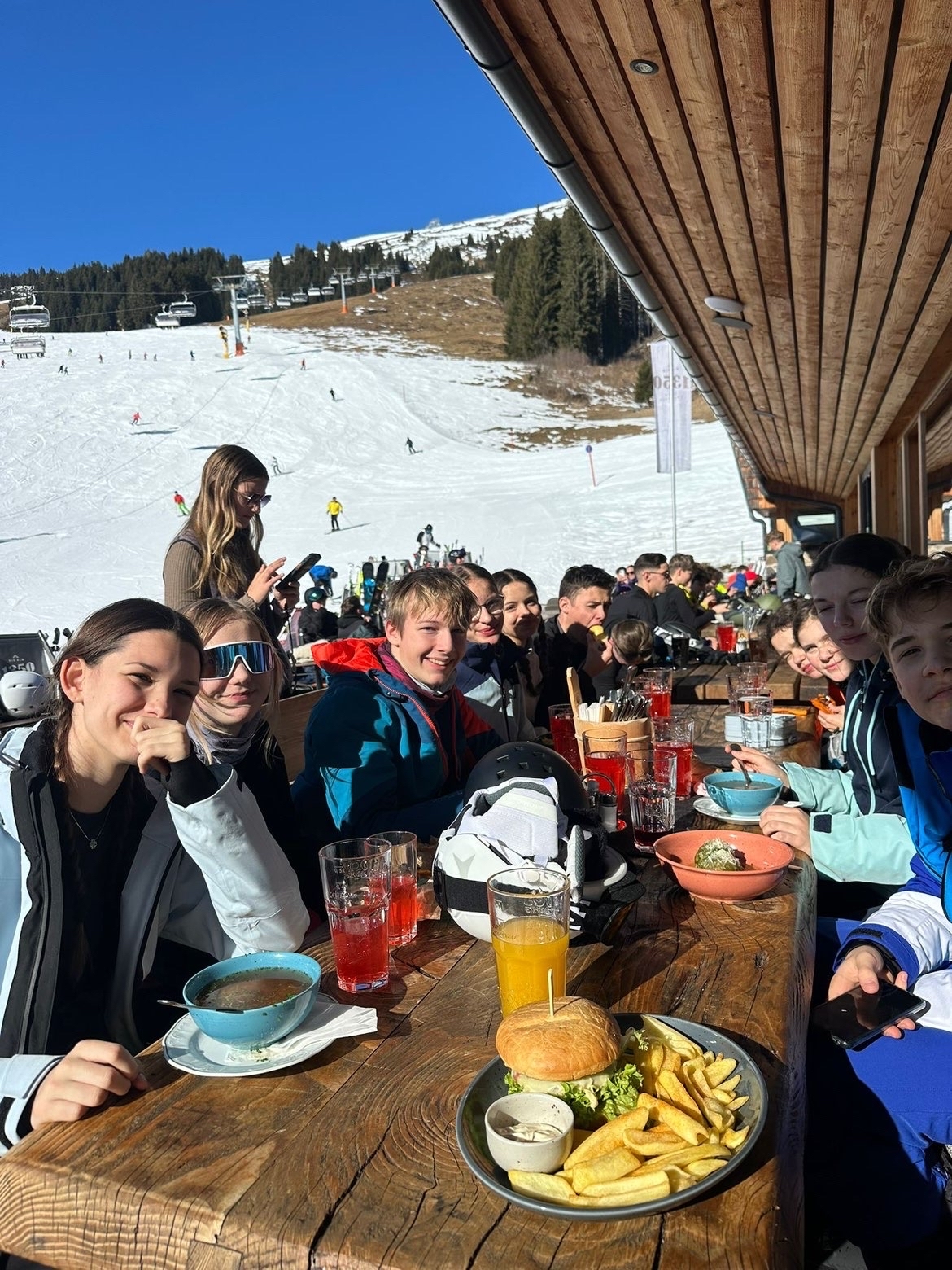 Von 8. bis 13. Februar 2026 verbrachten die Klassen 4A, 4B und 4D mit den Lehrenden Prof. Gasser, Prof. Ortmayer, Prof. Schörkhuber, Prof. Staudinger-Egger, Prof. Stöckler, Prof. Zöttl und dem Skikursleiter Prof. Schmollmüller eine erlebnisreiche Wintersportwoche in Saalbach. Praktischerweise lag die Jugendpension Grubhof direkt an der Piste, was uns ermöglichte, die Skigebiete Saalbach, Leogang, Hinterglemm und Fieberbrunn zu besuchen. Am ersten Abend startete die Woche mit einem Gruppengespräch, und in den darauffolgenden Tagen ging es weiter mit einem Vortrag über Lawinengefahr, einem Spieleabend, einem von zwei Schülerinnen (Paula S., 4D und Anna J., 4B) organisierten Karaoke-Abend und einer Disco. Aufgrund des guten Wetters waren alle gut gelaunt, und so war es eine sehr schöne und unvergessliche Wintersportwoche! Damit möchten wir uns für die wunderbare Woche bei Herrn Prof. Schmollmüller, aber auch bei allen anderen Begleitlehrenden herzlich bedanken, denn diese machten die Woche nur noch unvergesslicher!