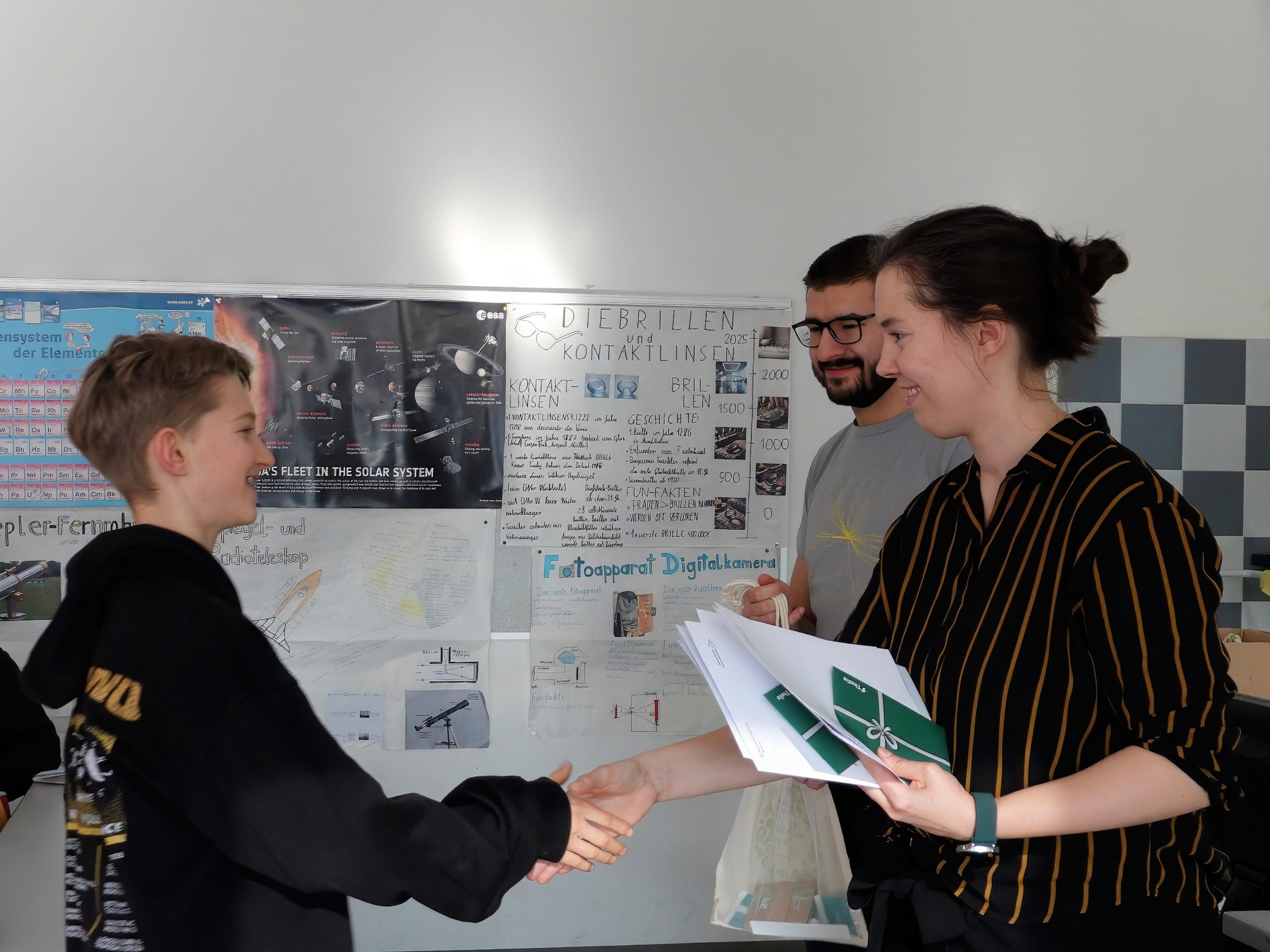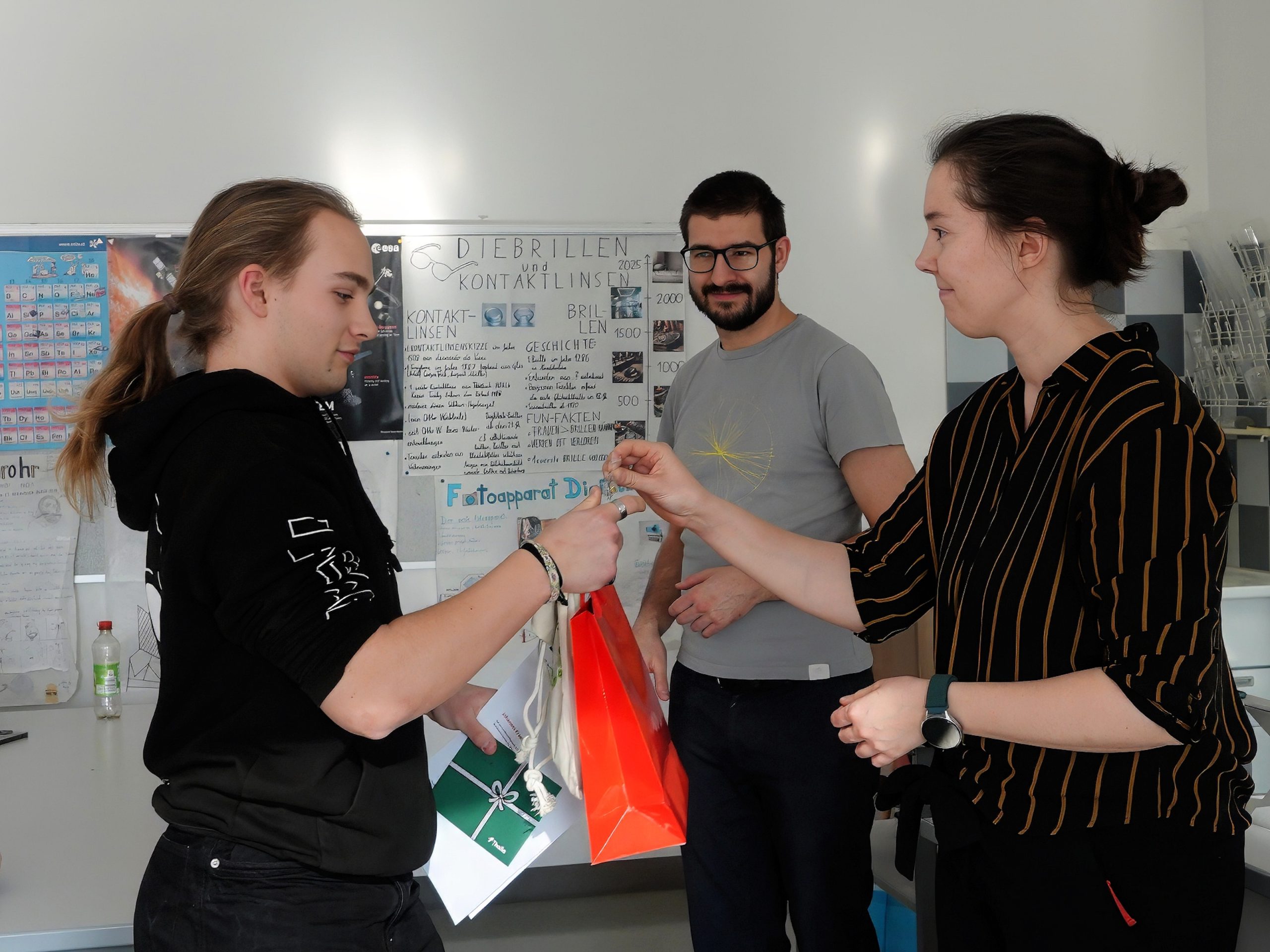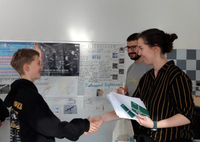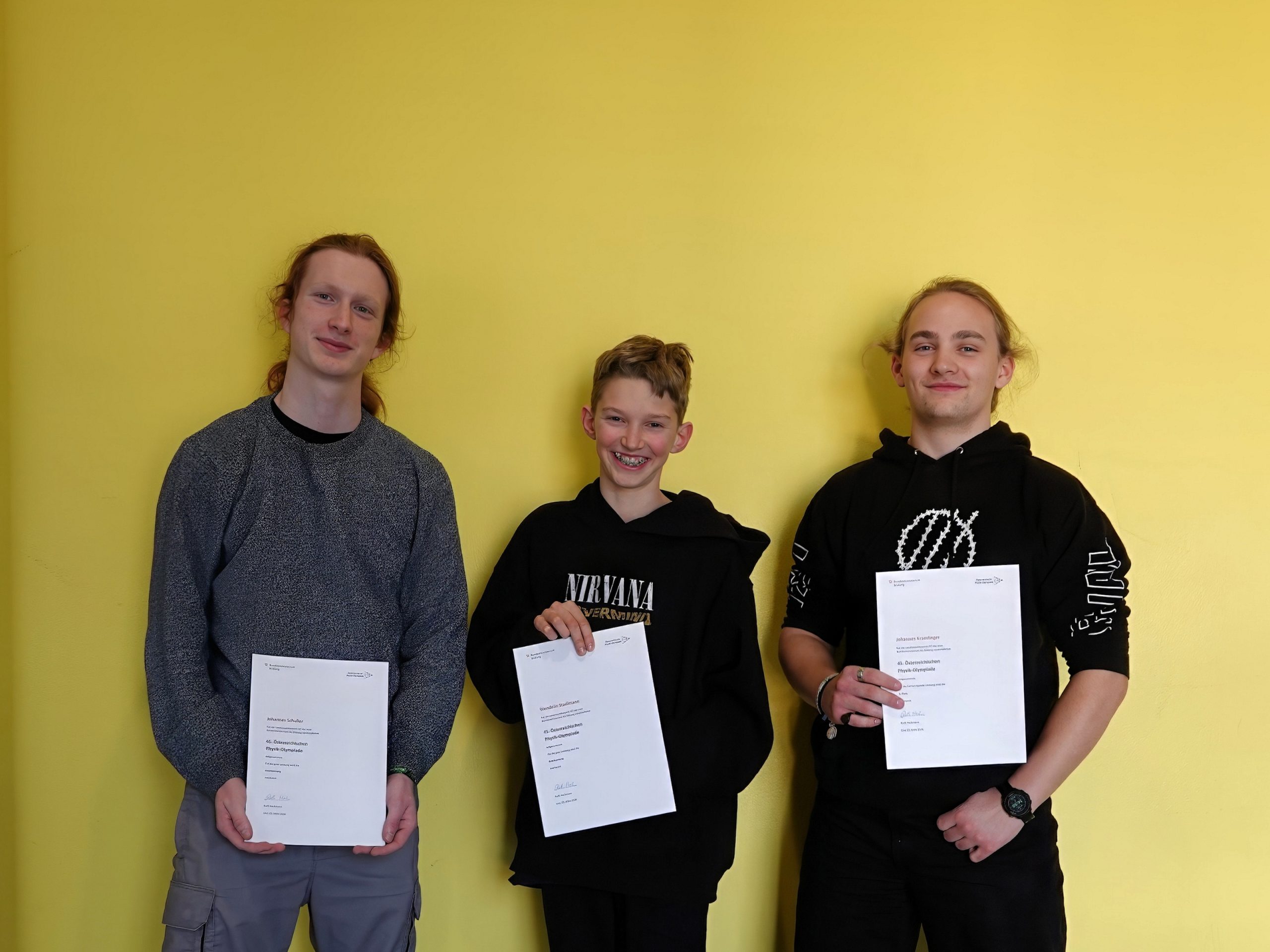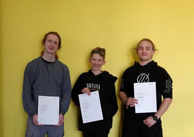 Dieses Jahr zwar ohne einen praktischen Teil, einem Experiment, wurden trotzdem die ganzen vier Stunden für die Rechenaufgaben genutzt. Die Teilnehmenden beschäftigten sich dabei unter anderem mit dem Dopplereffekt, Sonnenfinsternissen sowie der Energieumwandlung durch ein Mühlrad. Auch wenn nicht alle Aufgaben bearbeitet wurden und nicht von allen die gesamte Arbeitszeit genutzt wurde, gaben trotzdem alle ihr Bestes. Das zeigte sich dann auch bei der Preisverleihung: Johannes Kramlinger (8C) mit Bronze und Johannes Schuller (8C) und Wendelin Stadlmann (4B) ex aequo mit einem halben Punkt weniger auf den beiden Plätzen hinter ihm.