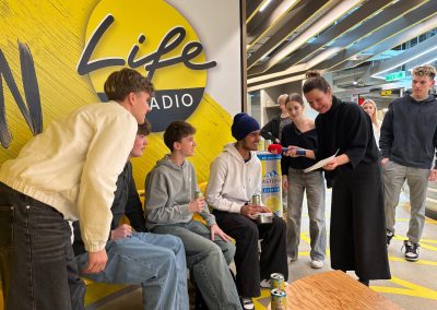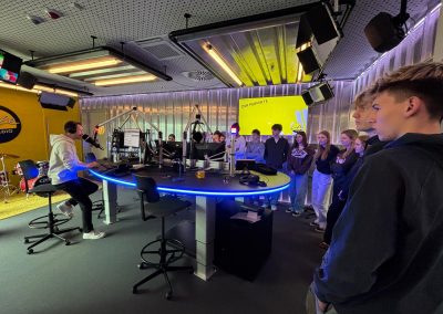 Am 11.03.2026 besuchte die 7B das Life Radio Studio in Linz. Wir erhielten dabei spannende Einblicke hinter die Kulissen des modernsten Audiocampus des Landes. Neben einer Führung durch die Studios durften wir auch bei einer Live-Sendung dabei sein und hautnah miterleben, wie ein Radioprogramm entsteht. Im Anschluss produzierten wir noch selbst einen Podcast. Das Highlight des Ausfluges war jedoch das Erstellen eines eigenen KI-Klassensongs, der ganz sicher noch öfter im Klassenzimmer abgespielt wird.