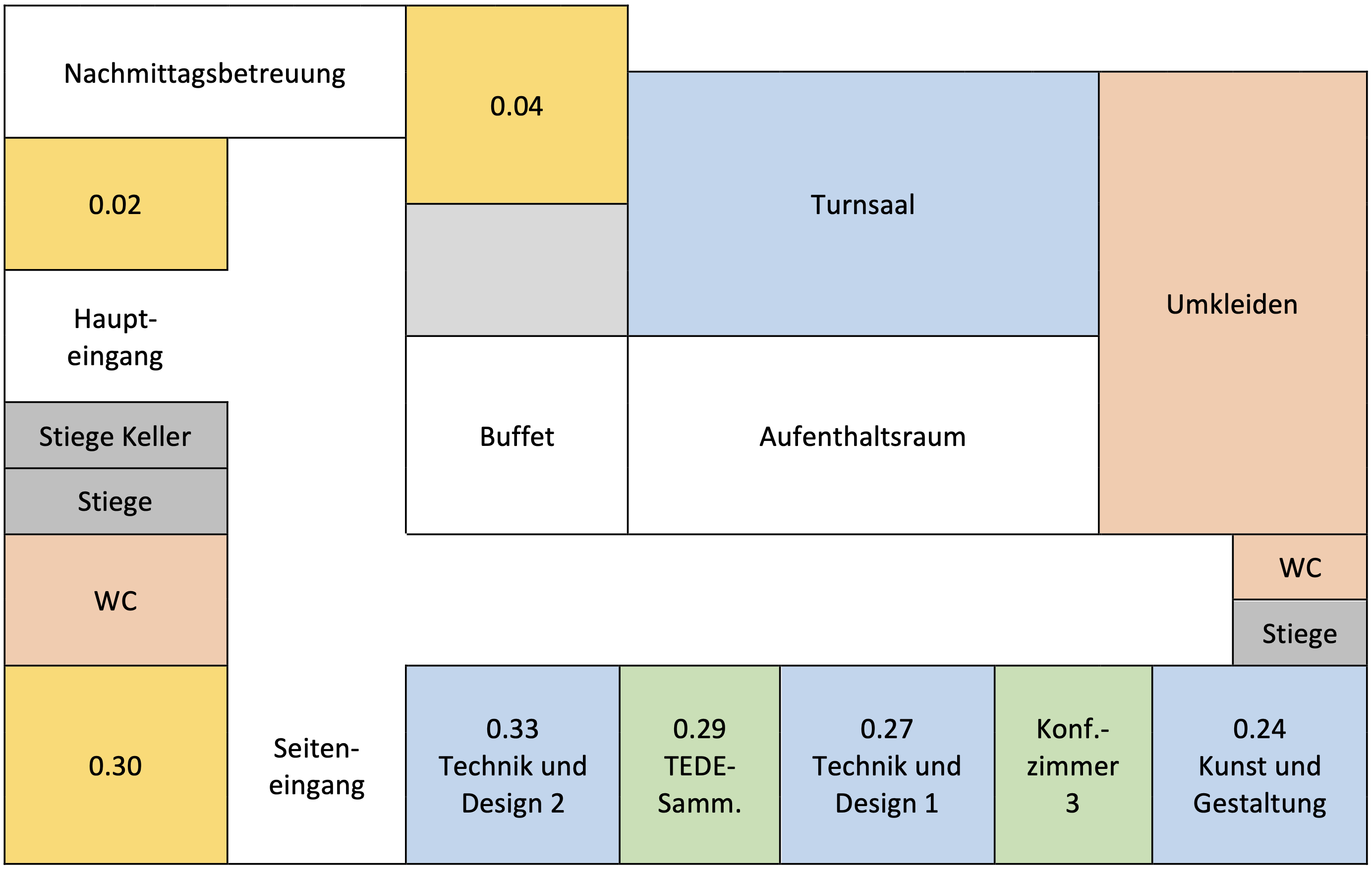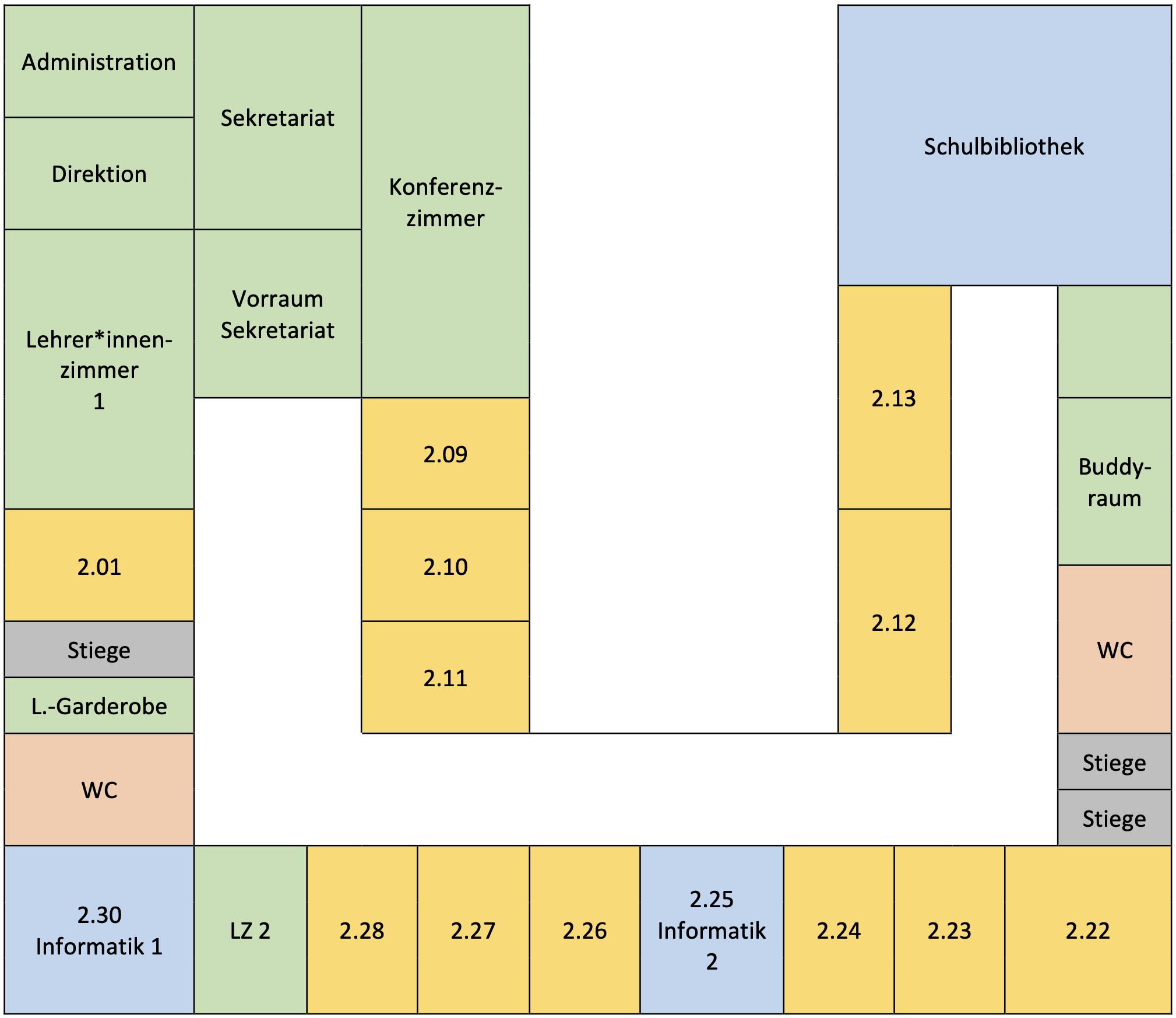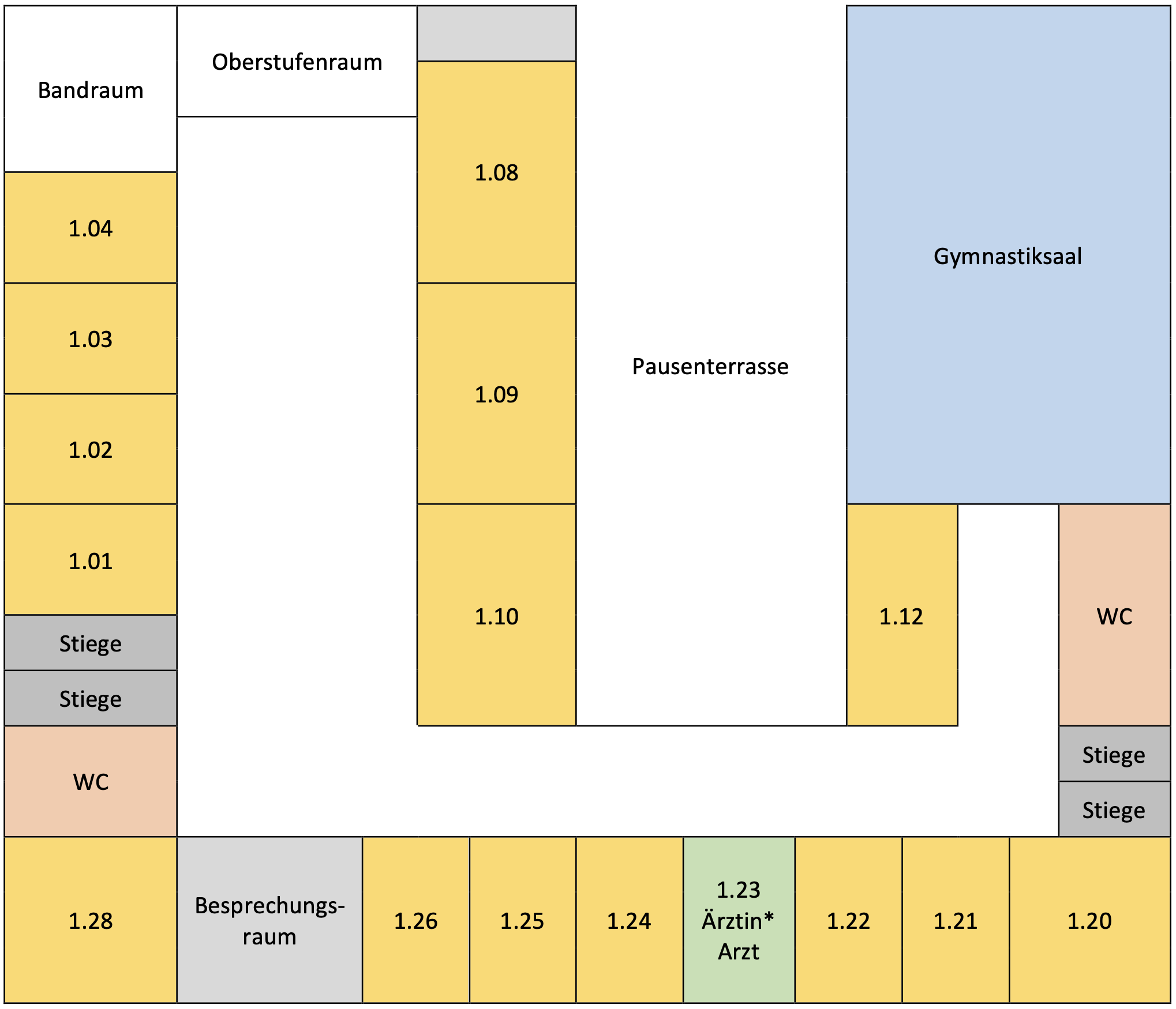 Eine Übersicht über die Raum-Nummern der einzelnen Klassen (Stand: Schuljahr 2025/2026) und Sonderräume: